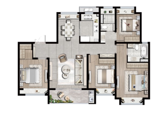 新云都会户型设计注重空间利用与舒适性,融合多元生活场景,满足不同家庭的居住需求。以下为三个代表性户型解析: