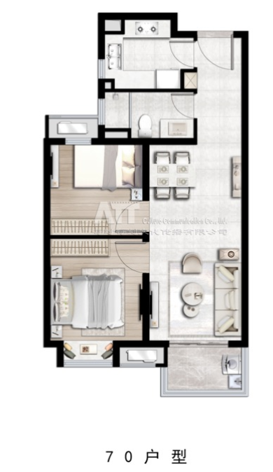 作为经济实用型户型,空间布局紧凑高效。双卧室设计适合小家庭或刚需客户,功能空间分布合理。开放式厨房与餐厅相连,动线简洁便捷。卫生间布局紧凑,满足日常居住需求。整体居住环境舒适,通风采光俱佳。该户型以实用为主,兼顾舒适性,是初次置业的理想选择。