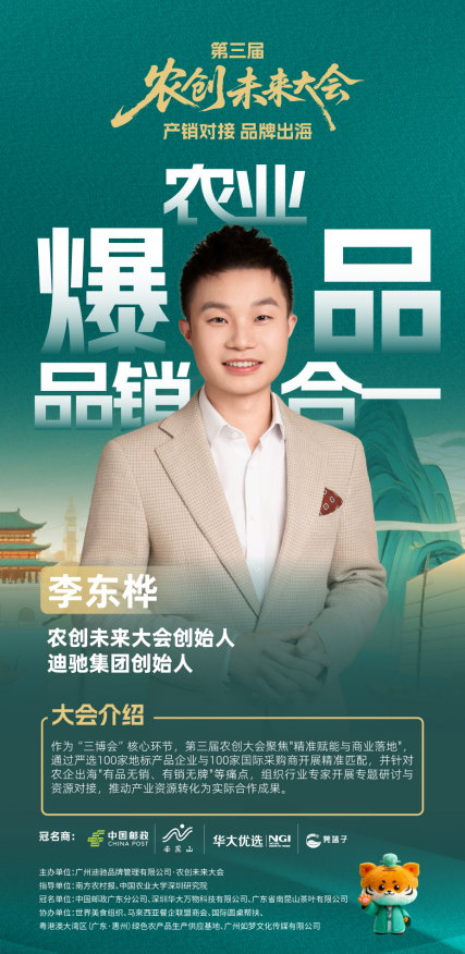 作为“三博会”的核心亮点之一,第三届农创未来大会由广州迪驰品牌管理有限公司主办,聚焦“赋能农业创新,链接产业未来”,以“大会峰会+三天展位”的创新模式,为全国农业企业搭建集品牌展示、渠道对接、国际交流于一体的高端合作平台。