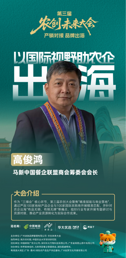 · 高俊鸿——马来西亚餐饮企业联盟商会筹委会会长,将带来东南亚餐饮市场对中国农产品的采购需求分析;